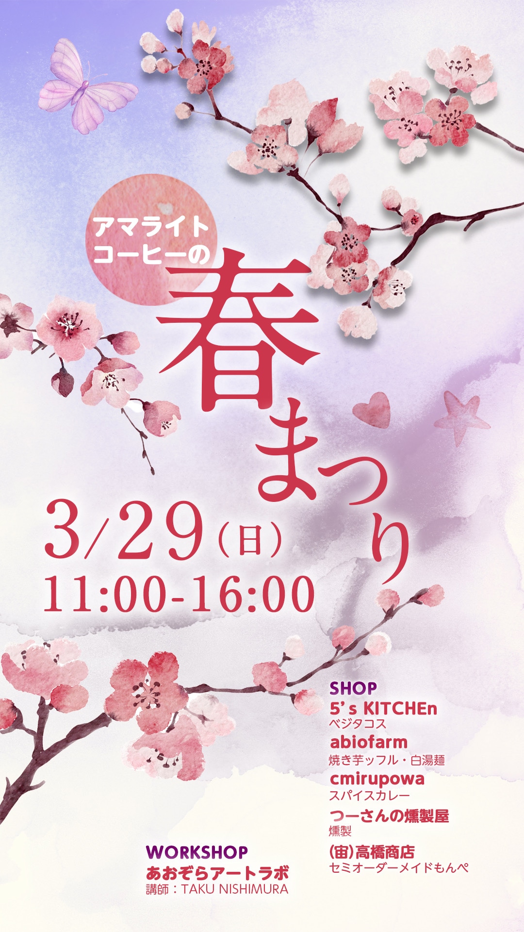 アマライトコーヒーのめぐちゃんにお声かけ頂きまして『アマライトコーヒーの春まつり』に出店させて頂きます。