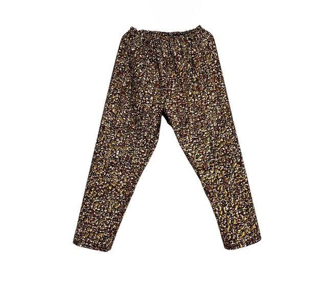 着心地が良く、動きやすい。 スッキリシルエットでカラフルデザイン。 お部屋でゆるっとくつろぎ着としても、パーっと外でアクティブ着としても大活躍間違いなし! 特徴 ①現代風もんぺ 現代人の体型に合うようにデザインを工夫し、老若男女問わず日常に取り入れられるように作られています。腰回りをスッキリさせ細身シルエットにした現代風もんぺです。 ②うなぎの寝床 現代風もんぺは、九州筑後のものづくり伝統文化を伝える地域アンテナショップ「うなぎの寝床」が手掛ける型紙を使用しています。 ※うなぎの寝床と商用利用契約を締結し制作販売をしております。 http://unagino-nedoko.net ③アフリカ布 太陽がさんさんと降り注ぐ暑い気候に良く似合うビビッドなカラー、伝統文化や植物の大胆な図柄が特徴的なアフリカンワックスプリント布を使用しています。アフリカ ケニアから仕入れています。 ④日本文化とアフリカ文化の融合 農耕民族である日本人に合った農作業着であったもんぺは、腰回りとお腹回りがゆったりと作られています。かがみこんだりする作業が多く、その姿勢が楽に出来るように作られていますので動きやすいのが特徴です。その長所を生かしつつ、現代人の体型に合わせてスッキリ細身にしています。 アフリカンワックスプリント布は、服はもちろん、頭に巻いたり、物を包むのにも使われて丈夫なためアフリカでは重宝されています。至るところで使用されていますが、もんぺは日本固有のパンツなのでアフリカには無いと思います。日本とアフリカ文化の融合がポッとするもんぺです。 ⑤基本性能 ・腰ゴム 腰にはゴムが入っており、ゆったりと着られます ・前ポケット 右前にポケットが着いています。後ろや横には着いておりません。もともと農作業着として使用されており、作業時にお尻がつっぱらないように前ポケットになったと言われています。 ・膝当て 農作業着として使用されていた機能そのままに、膝当てが入っています。 ・裾ゴム 足元スッキリさせるため裾にゴムを入れています。 ⑥素材 ・アフリカンワックスプリント布 ・綿 100% ・ウエスト、裾 ゴム ⑦サイズ サイズ:M 男女兼用 ウエスト:65~102cm ヒップ:112cm パンツ丈:98cm 股上:32cm 股下:66cm ふくらはぎ:38cm 裾幅:34cm サイズ:L 男女兼用 ウエスト:68〜108cm ヒップ:116cm パンツ丈:102cm 股上:35cm 股下:67cm ふくらはぎ:41cm 裾幅:40cm 適正サイズは「基本サイズの選び方」よりご確認ください。 https://www.takahashi-store.com/p/00001 ⑧注意点 ・一点一点手作りで丁寧に仕上げているつもりですが、縫い目の曲がり、仕上がりの誤差など多少発生します。 ・撮影状況や閲覧環境により実物と発色が違って見える場合がございます。 ・ワックスプリント生地はプリントのずれやにじみなどがある場合がございます。 これもアフリカ布の特徴(個性)だと思って受け入れてもらえたら嬉しいです。 ・色落ちや色移りすることがございますので、しばらくは単独でお洗濯をして様子を見て下さい。 ・柄取りによりイメージと違う仕上がりになる事があるかと思います。ご了承頂き一任願います。心配な場合は大柄よりも小柄のものをお選び下さい。 ・アフリカ布のみの販売はしておりません。