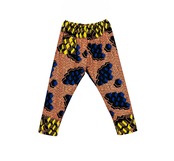 アフリカンワックスプリント布は、服はもちろん、頭に巻いたり、物を包むのにも使われて丈夫なためアフリカでは重宝されています。至るところで使用されていますが、もんぺは日本固有のパンツなのでアフリカには無いと思います。日本とアフリカ文化の融合がポッとするもんぺです。