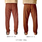 現代人の体型に合うようにデザインを工夫し、老若男女問わず日常に取り入れられるように作られています。腰回りをスッキリさせ細身シルエットにした現代風もんぺです。