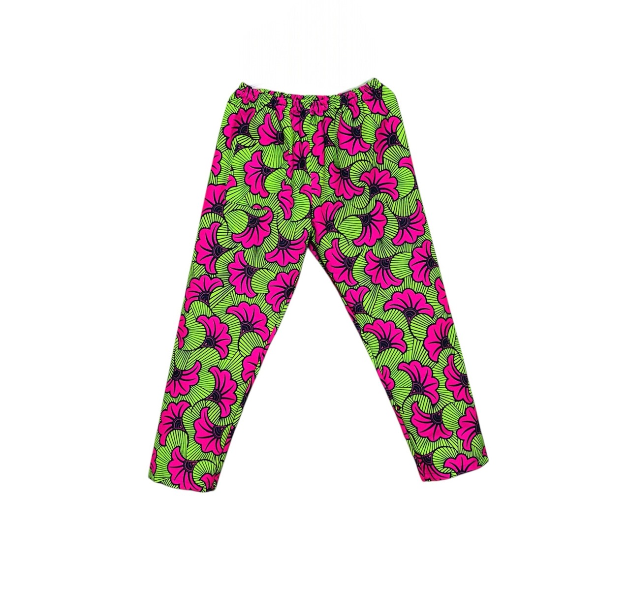 アフリカンワックスプリント布は、服はもちろん、頭に巻いたり、物を包むのにも使われて丈夫なためアフリカでは重宝されています。至るところで使用されていますが、もんぺは日本固有のパンツなのでアフリカには無いと思います。日本とアフリカ文化の融合がポッとするもんぺです。