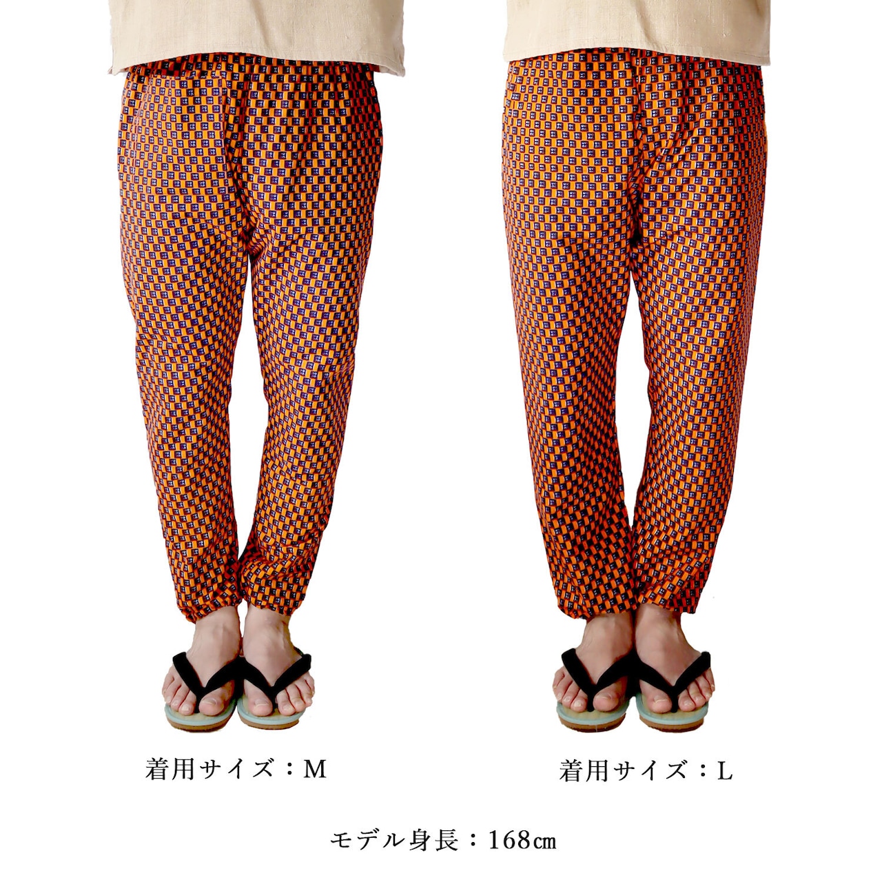 現代人の体型に合うようにデザインを工夫し、老若男女問わず日常に取り入れられるように作られています。腰回りをスッキリさせ細身シルエットにした現代風もんぺです。