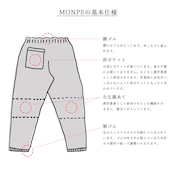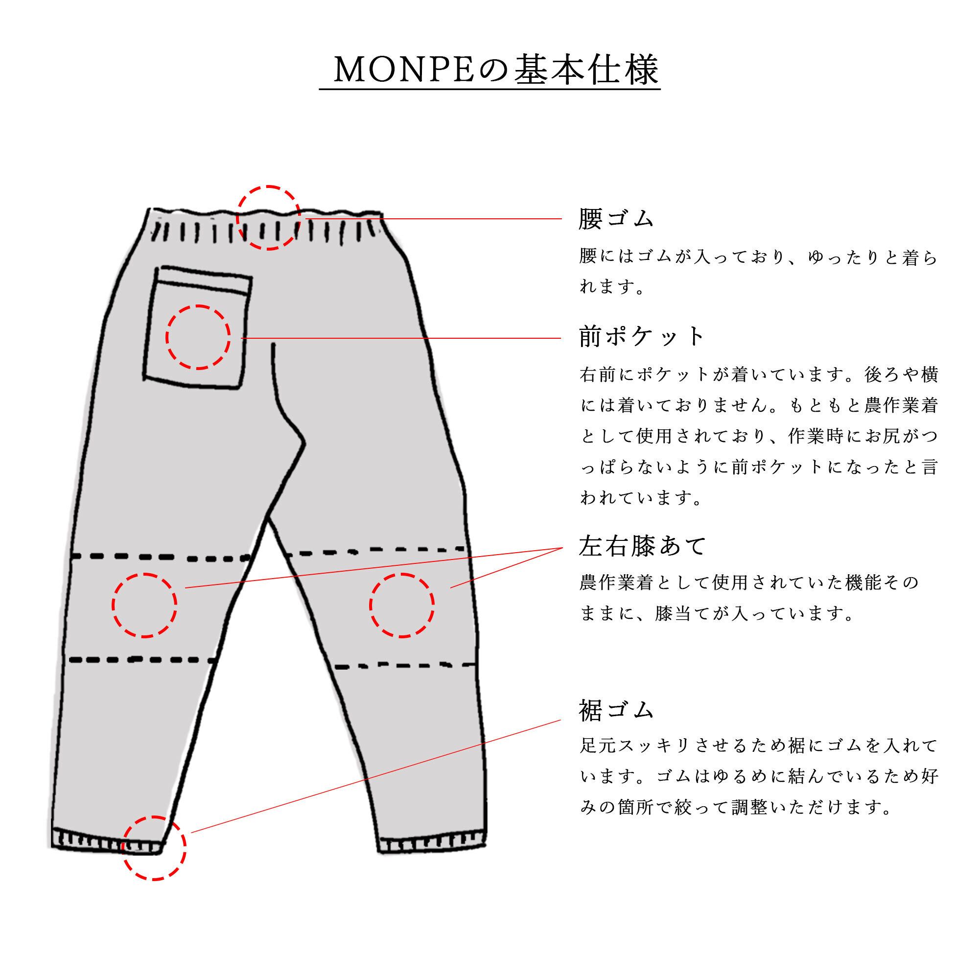 現代人の体型に合うようにデザインを工夫し、老若男女問わず日常に取り入れられるように作られています。腰回りをスッキリさせ細身シルエットにした現代風もんぺです。