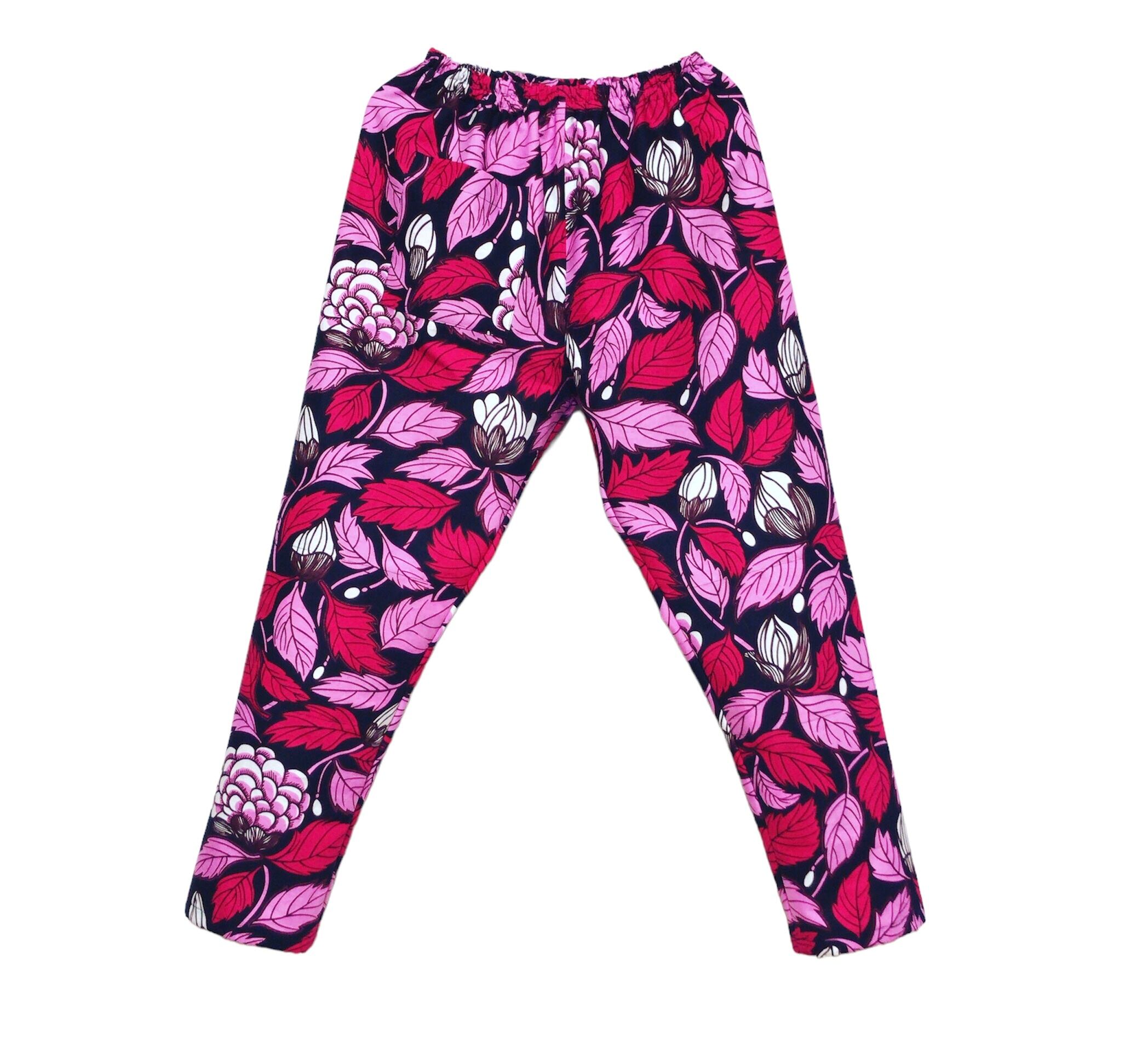 ポッとするもんぺ アフリカ布 植物柄 ピンク