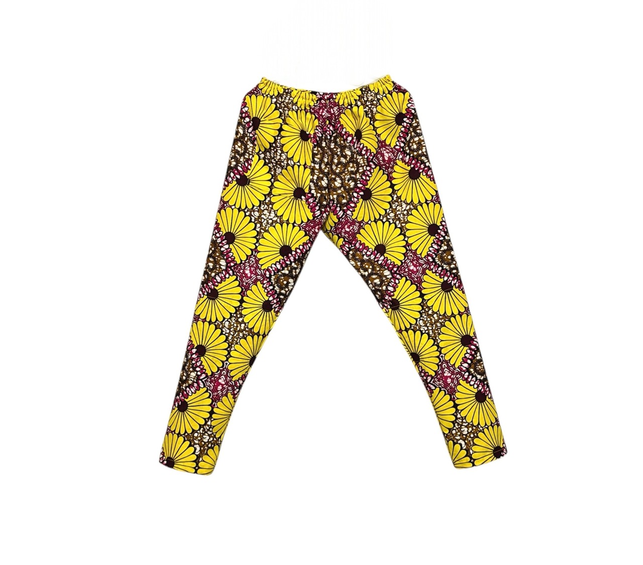 アフリカンワックスプリント布は、服はもちろん、頭に巻いたり、物を包むのにも使われて丈夫なためアフリカでは重宝されています。至るところで使用されていますが、もんぺは日本固有のパンツなのでアフリカには無いと思います。日本とアフリカ文化の融合がポッとするもんぺです。